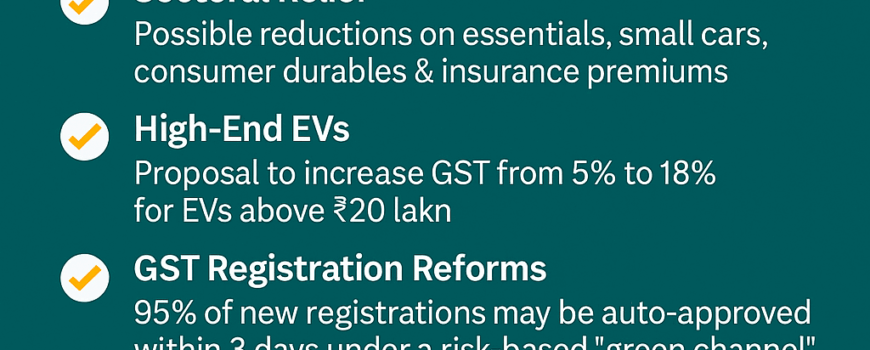 All eyes were on today’s GST Council meet – and rightly so! The long-awaited “GST 2.0” discussions have begun, and as per reputed news sources (Moneycontrol, Reuters, Economic Times, Outlook Business, TOI, CNBC), several key updates are under consideration; Key Updates (Notified Status Awaited) ✅ Two-Slab Structure Proposal Simplification to 5% & 18%, with 40%[…..]